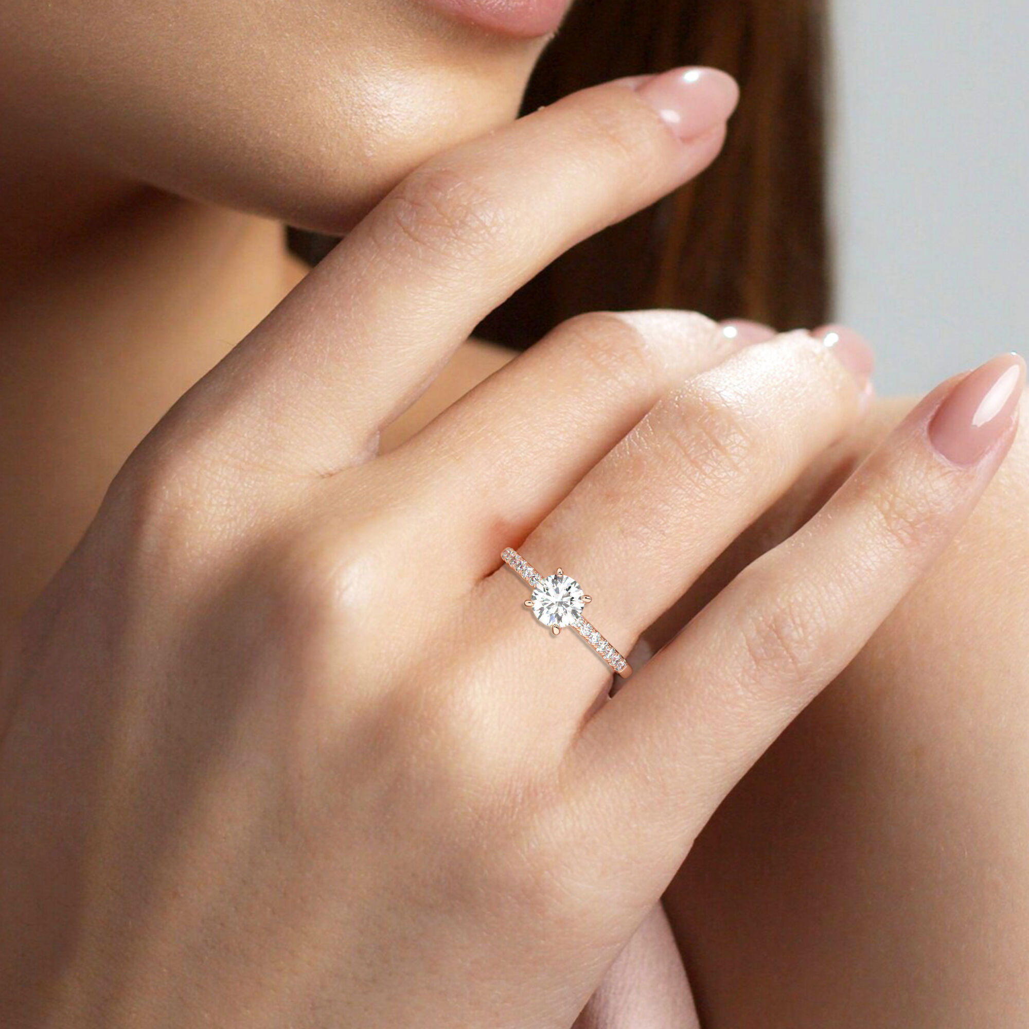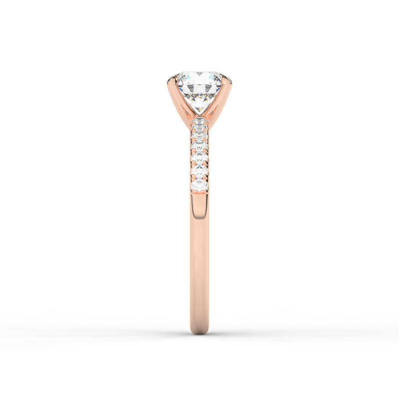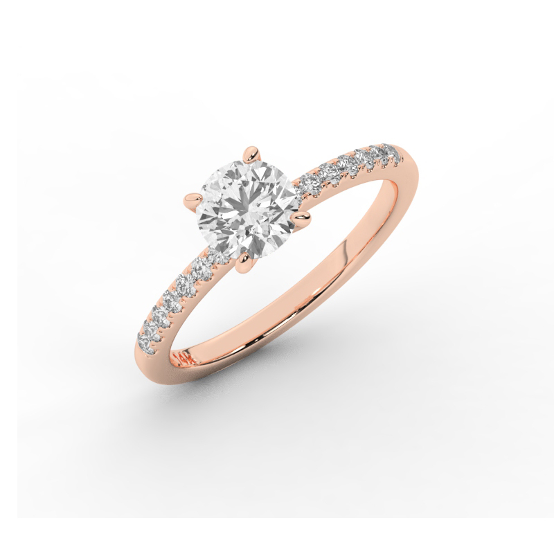 מסביב משובצים 14 יהלומי מעבדה בחיתוך עגול במשקל כולל של 0.14 קרט.